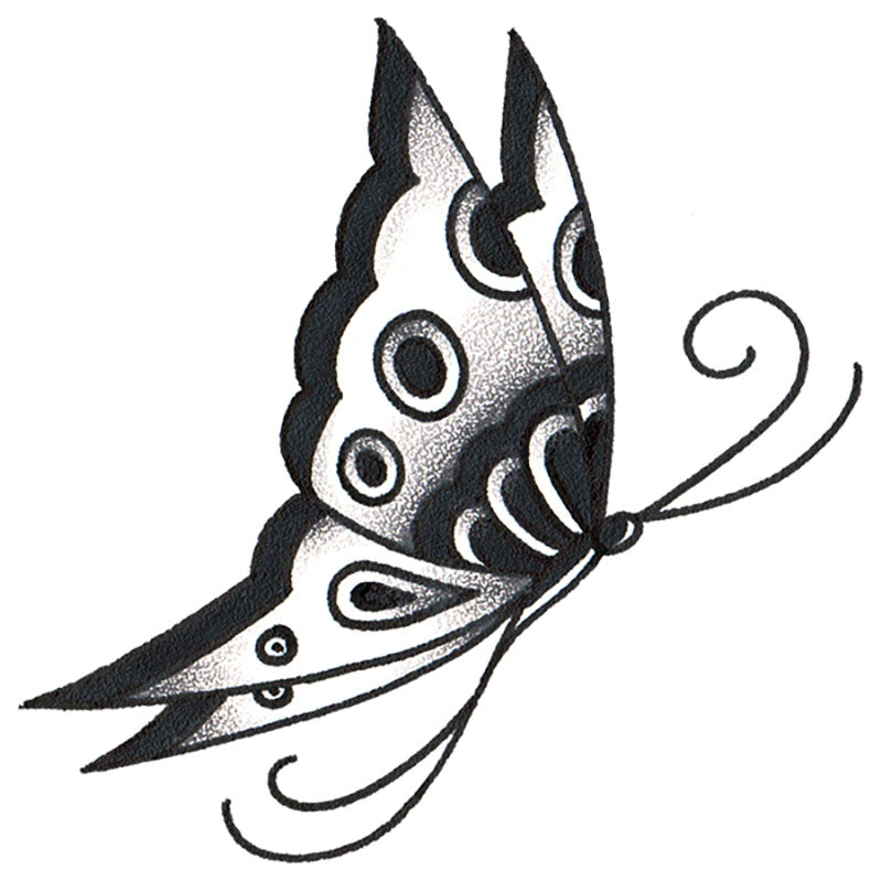 Our temporary tattoo design, the "Butterfly", is a one to one scale transfer of the original hand painted artwork by Tim Hendricks and Javier DeLuna.