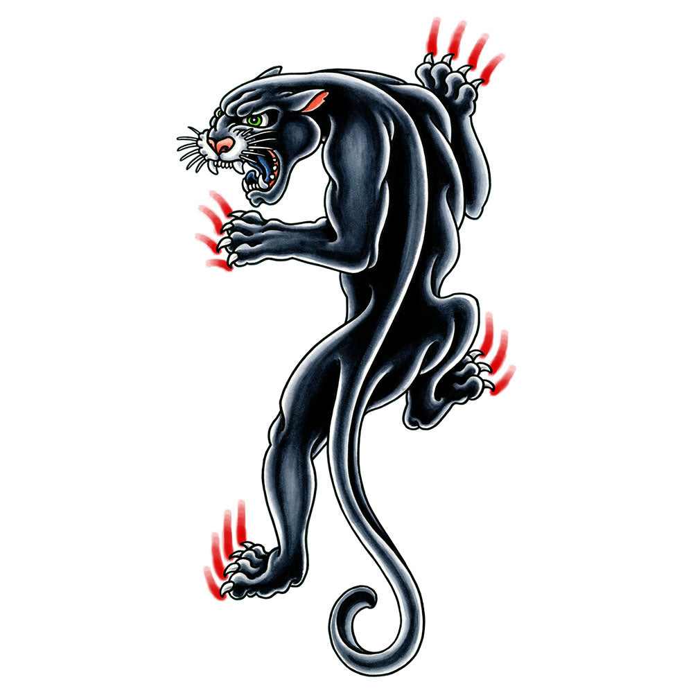 Our temporary tattoo design, the “Panther", is a one to one scale transfer of the original hand painted artwork by Tim Hendricks and Javier DeLuna.