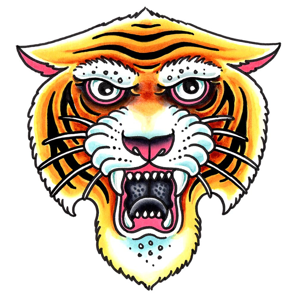 Our temporary tattoo design, the “Tiger Head”, is a one to one scale transfer of the original hand painted artwork by Tim Hendricks and Javier DeLuna.